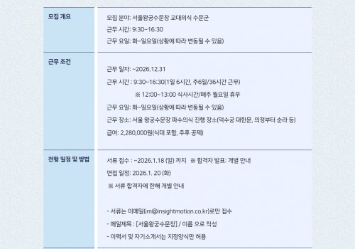 2026 서울왕궁수문장 숭례문 파수의식 직원모집