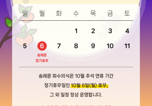 [숭례문 파수의식] 10월 추석 행사일정 안내